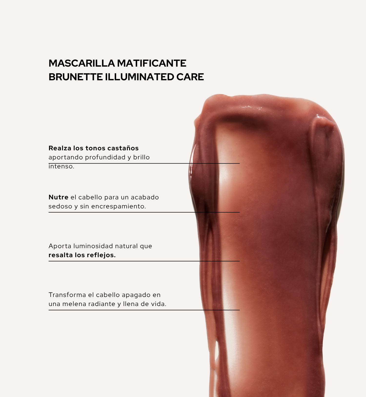 <b>Brunette Illuminated Care</b><br><span style="font-family: 'Red Hat Mono', monospace;">Mascarilla para cabello castaño que realza los tonos morenos</span>
