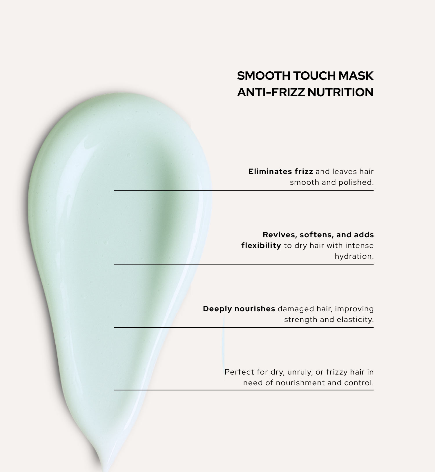 <b>Smooth Touch Mask</b><br><span style="font-family: 'Red Hat Mono', monospace;">Nourishing anti-frizz mask for dry or frizzy hair</span>