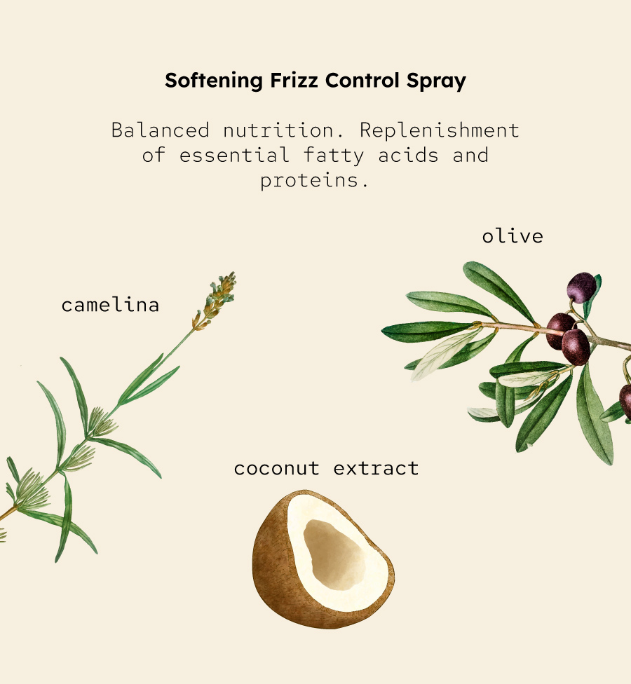 <b>Softening Frizz Control Spray</b><br><span style="font-family: 'Red Hat Mono', monospace;">Nourishing anti-frizz treatment that doesn’t weigh hair down.</span>