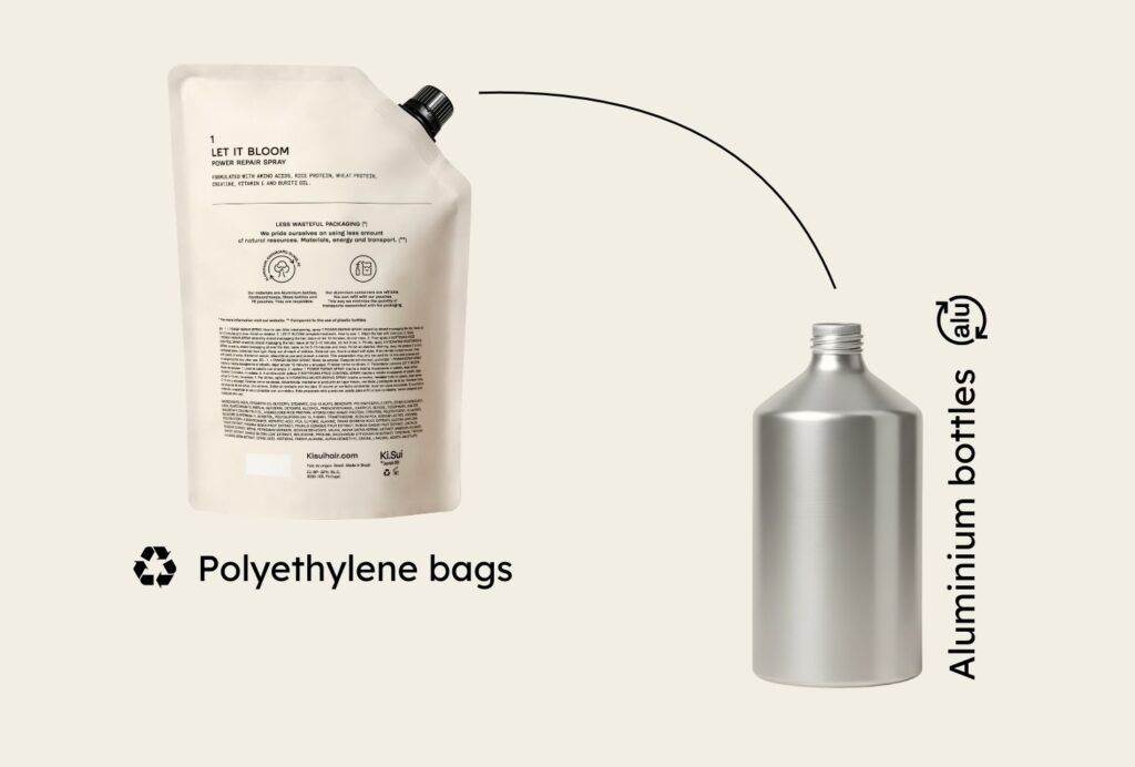 At Ki.Sui, we believe reusing is the real path to a more sustainable beauty. Our 1L and 500ml refill pouches are designed to easily refill our aluminum bottles.